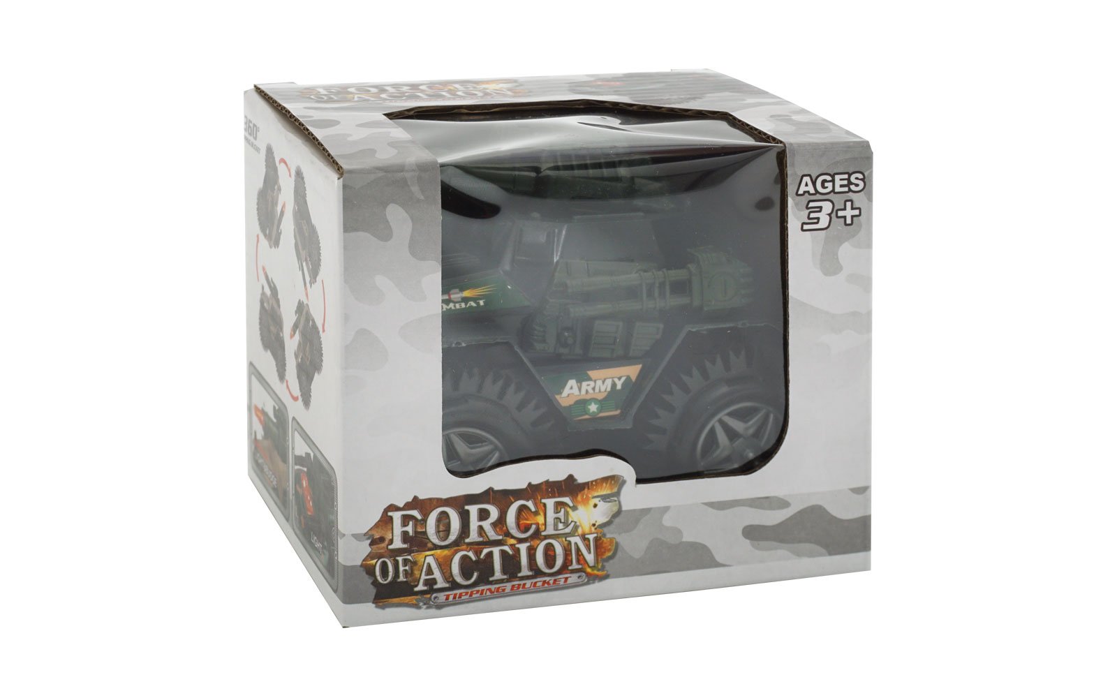 Robusten vojaški džip velikosti 11 cm ima lučko ter se obrne in spremeni smer vožnje, ko trči ob oviro. Za delovanje potrebuje 2 bateriji tipa AA 1.5 V, ki nista priloženi.