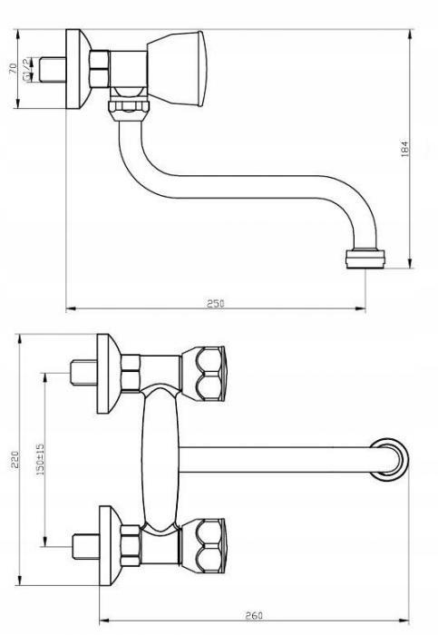 Linija standardnih kuhinjskih in kopalniških pip. Izdelana iz masivne medenine s kromiranim premazom, ima ločene gobaste glave za toplo in hladno vodo z vrtljivim izlivom. Zasnova zagotavlja vzdržljivost in kakovost za prihodnja leta. Ta ekonomična linija standardnih pip ponuja praktične funkcije ter oblike in površine, ki jih je enostavno čistiti. Stenske pipe so opremljene z ekscentričnimi priključki G 1/2".