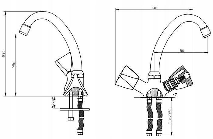 Linija standardnih kuhinjskih in kopalniških pip. Izdelana je iz masivne medenine s kromiranim premazom in ima ločene gobaste glave za toplo in hladno vodo z vrtljivim izlivom. Izdelava zagotavlja vzdržljivost in kakovost za prihodnja leta. Ta ekonomična linija standardnih pip ponuja praktične funkcije ter oblike in površine, ki jih je enostavno čistiti. Stenske pipe so opremljene z ekscentričnimi priključki G 1/2".
