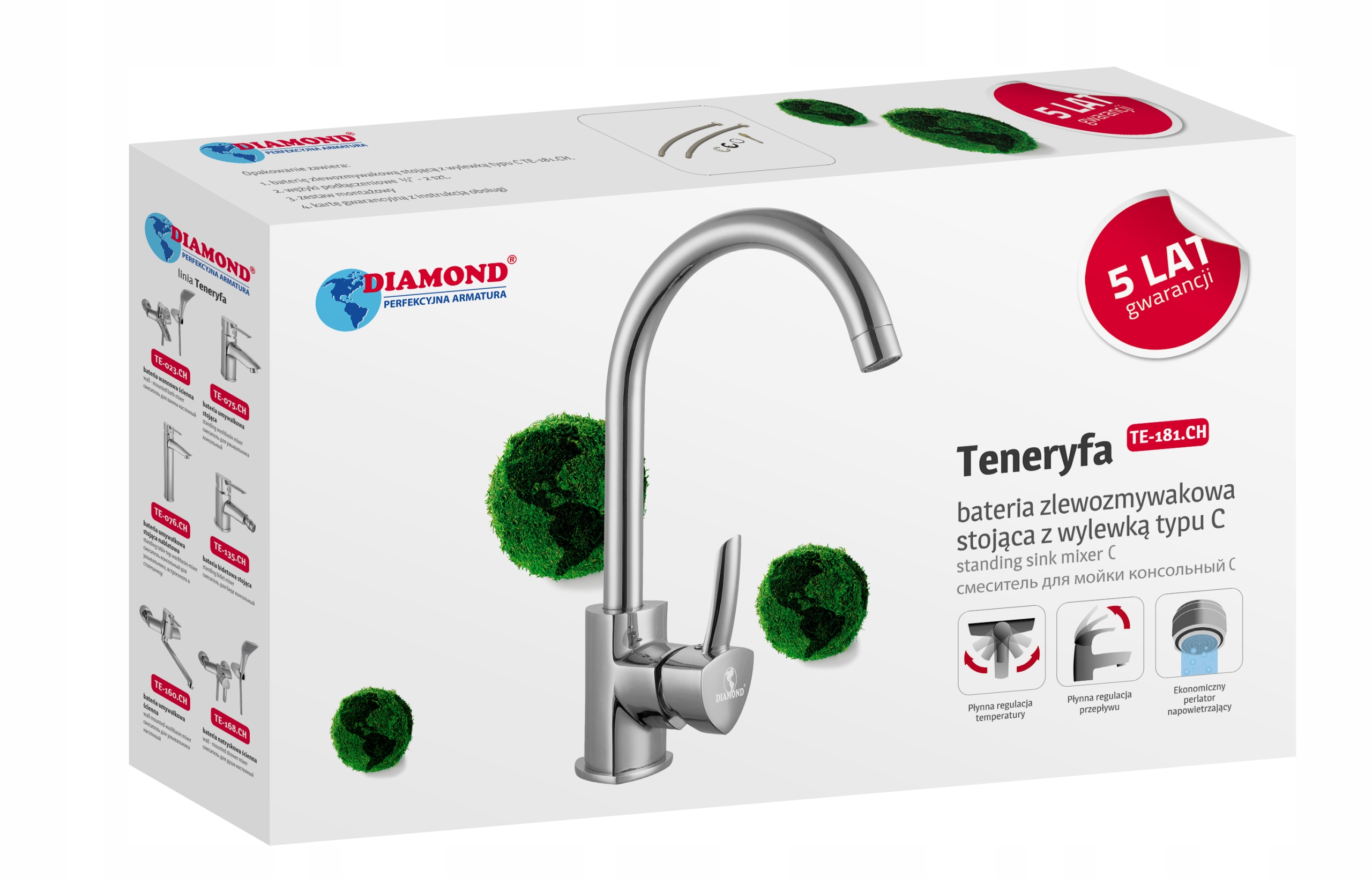 Sodobna linija funkcionalnih PREMIUM kuhinjskih in kopalniških pip. Izdelana je iz masivne medenine s kromiranim premazom in ima keramični regulator ter perlator s sistemom za varčevanje z vodo. Zasnovana za zahtevnega kupca, se popolnoma prilega sodobnim notranjostim. Popolna izdelava zagotavlja vzdržljivost in kakovost za prihodnja leta. Linija TENERIFA ponuja praktične funkcije ter oblike in površine, ki jih je enostavno čistiti. Ponuja tudi pultno pipo za umivalnik.