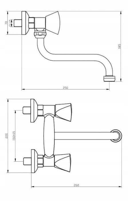 Linija standardnih kuhinjskih in kopalniških pip. Izdelana je iz masivne medenine s kromiranim zaključkom in ima ločene gobaste glave za toplo in hladno vodo z vrtljivim izlivom. Izdelava zagotavlja vzdržljivost in kakovost za prihodnja leta. Ta ekonomična linija standardnih pip ponuja praktične funkcije ter oblike in površine, ki jih je enostavno čistiti. Stenske pipe so opremljene z ekscentričnimi priključki G 1/2".