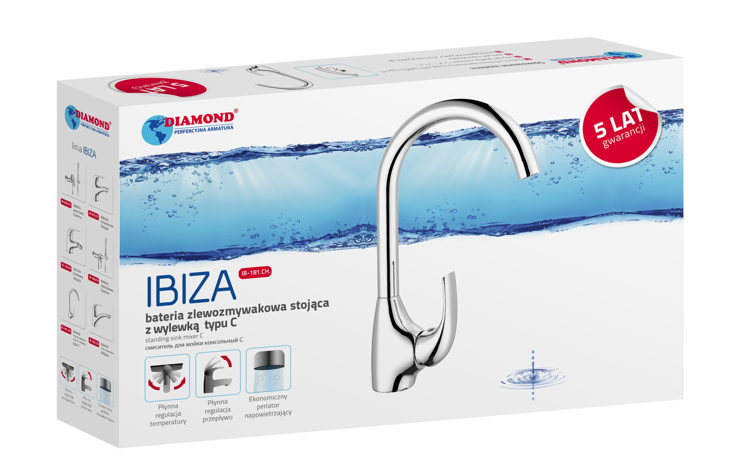 Sodobna linija funkcionalnih PREMIUM kuhinjskih in kopalniških pip. Izdelana je iz masivne medenine s kromiranim premazom in ima keramični regulator ter perlator s sistemom za varčevanje z vodo. Zasnovana za zahtevnega kupca, se popolnoma prilega sodobnim notranjostim. Popolna izdelava zagotavlja vzdržljivost in kakovost za prihodnja leta. Linija IBIZA ponuja praktične funkcije ter enostavne oblike in površine za čiščenje.