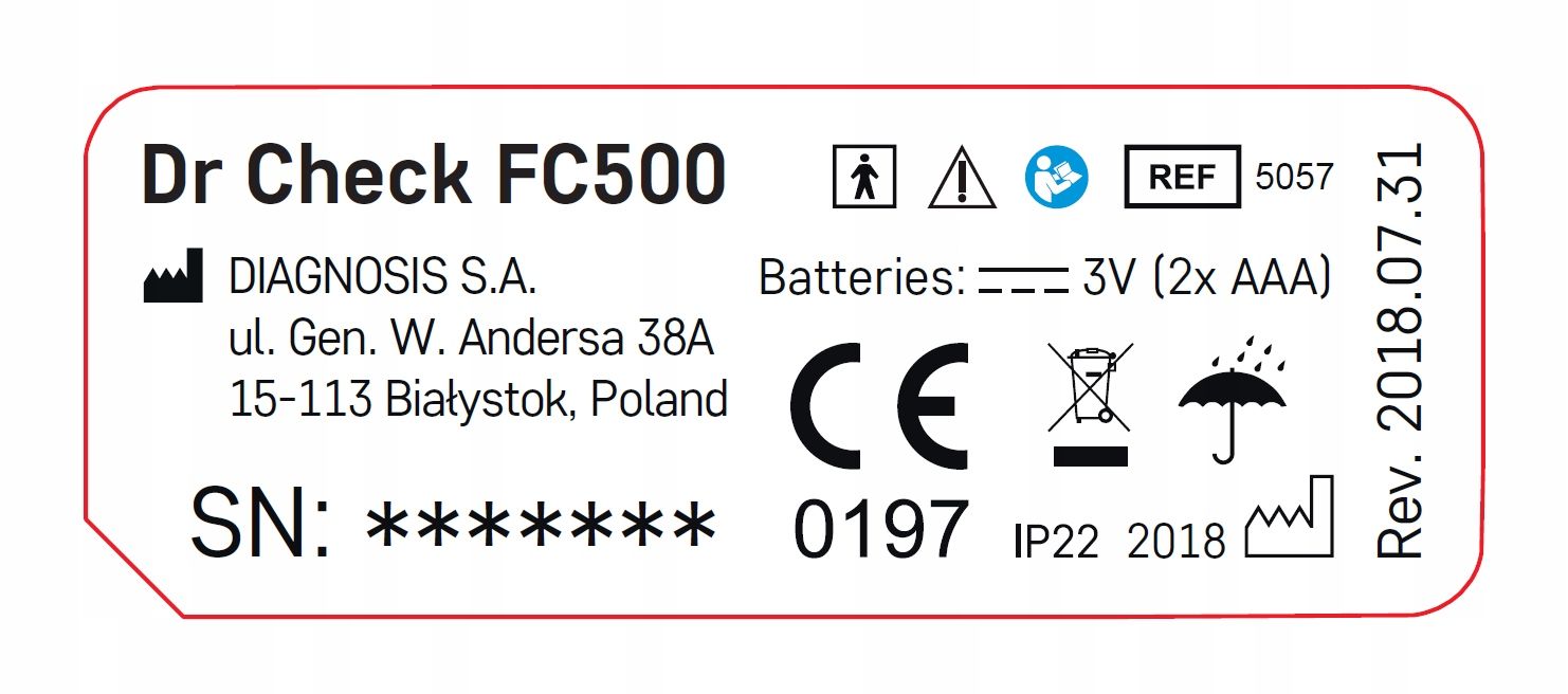 Brezkontaktni termometer FC 500 1 kosTermometer je zelo enostaven in priročen za uporabo, zahvaljujoč infrardečemu senzorju pa zagotavlja natančno in zanesljivo merjenje temperature.Termometer Dr Check FC 500 je visokokakovosten izdelek, izdelan z infrardečo tehnologijo, ki omogoča higiensko, brezkontaktno merjenje temperature v samo nekaj sekundah. S termometrom Dr Check FC500 lahko izmerite: telesno temperaturo, temperaturo površine in temperaturo okolice. Termometer Dr Check FC500 je termometer: klinično preizkušen v skladu z mednarodnimi standardi, omogoča neinvazivno merjenje na otrokom prijazen način, higieničen – za čiščenje se lahko uporabi bombažna krpa, namočena v alkohol, varen – ni nevarnosti razbitja stekla ali zaužitja živega srebra, priročen – priložen je plastični etui za shranjevanje izdelka, ima osvetljen zaslon, omogoča merjenje temperature ponoči, omogoča shranjevanje zadnjih 30 meritev, omogoča merjenje telesne temperature odraslih in otrok, ima alarm za vročino pri temperaturi 37,5 °C ali več in ima funkcijo merjenja okolice. Navodila za uporabo: Merjenje telesne temperature: Pritisnite gumb VKLOP/IZKLOP. Zadnja meritev bo na zaslonu prikazana 1 sekundo. Ko začneta utripati simbola „°C“ ali „°F“, se bo oglasil kratek pisk, ki označuje, da je termometer pripravljen za meritev. Termometer usmerite v sredino čela, največ 5 cm stran. Za večjo natančnost meritve odstranite lase, znoj in umazanijo z območja obrvi. Pritisnite gumb START. Modra lučka poleg merilnega senzorja označuje mesto meritve. Po 1 sekundi bo kratek pisk označil konec meritve. Izmerjeno temperaturo odčitajte na LCD-zaslonu. Merjenje temperature predmeta: Z stikalom za način na strani termometra spremenite način merjenja v „merjenje temperature predmeta“. Pritisnite gumb VKLOP/IZKLOP. Vsi segmenti bodo na zaslonu prikazani 2 sekundi. Zadnja meritev bo samodejno prikazana 2 sekundi skupaj z ikono „M“. Nato termometer usmerite v sredino predmeta, katerega temperaturo želite izmeriti, pri čemer vzdržujte razdaljo največ 5 cm. Pritisnite gumb START. Po 3 sekundah bo meritev končana, kar označuje dolg pisk. Izmerjeno temperaturo odčitajte na LCD-zaslonu. Pomembni nasveti med merjenjem: Temperaturo vedno merite na istem mestu, saj se odčitek lahko razlikuje glede na mesto merjenja. Ne merite temperature dojenčka med hranjenjem ali takoj po hranjenju. Termometra ne uporabljajte v pogojih visoke vlažnosti. Termometra ne odmikajte od mesta merjenja, dokler se ne zasliši zadnji pisk. Uporaba vatirane palčke: Za čiščenje sonde uporabite krpo, navlaženo z alkoholom, in počakajte 15 minut, preden izmerite temperaturo drugega pacienta. Pacient pred ali med merjenjem ne sme piti, jesti ali se telovaditi. Pacient mora pred meritvijo ostati v zaprtih prostorih pri konstantni temperaturi okolice vsaj 30 minut. Vsebina paketa: termometer, plastično ohišje, navodila za uporabo v poljščini, 2 bateriji AAA. Namen izdelka: Brezkontaktni termometer je medicinski pripomoček za merjenje telesne temperature na čelu in temperature površine. Medicinski pripomoček – oznaka CE št.: 0197. Priložena je izjava EU o skladnosti. Vključuje navodila za uporabo in vmesnik v poljščini. Vključuje nalepko v poljščini.
