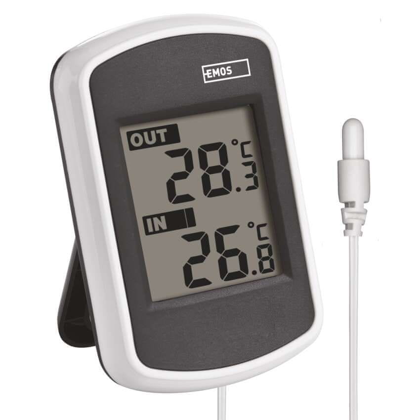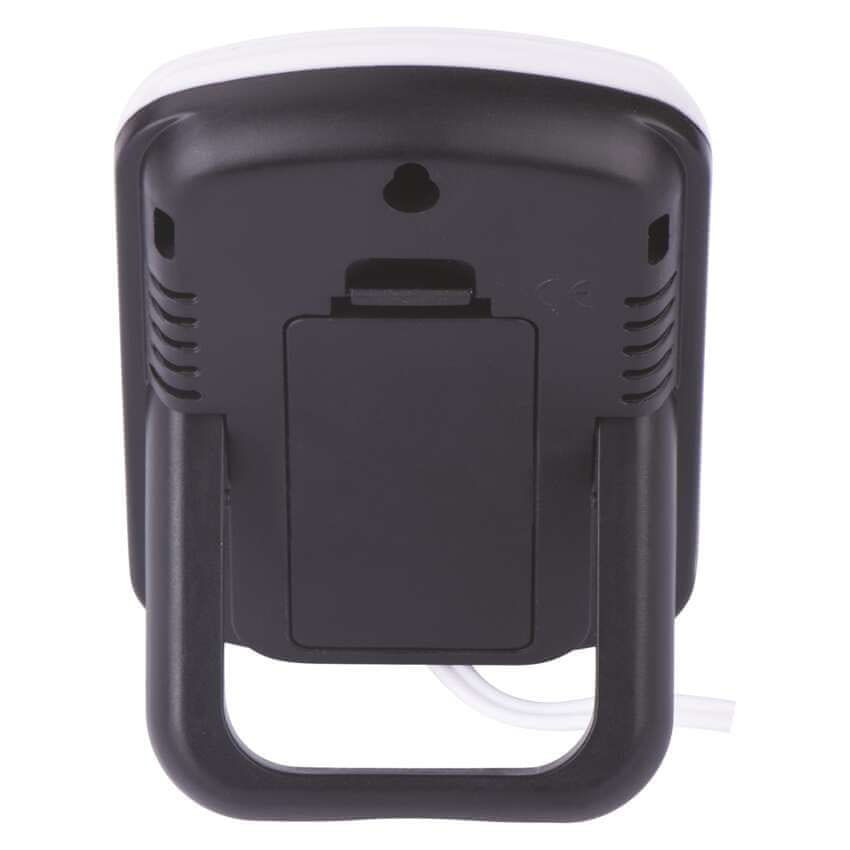 izvedba termometra: žični • notranja temperatura: 0 °C do +60 °C, ločljivost 0,1 °C • zunanja temperatura: –40 °C do +60 °C, ločljivost 0,1 °C • možnost nastavitve enote temperature °C/°F: °C • žična sonda za senzor: 2 m, Ø 8 mm • možnost obešenja na steno • dimenzije glavne enote: 18 × 57 × 85 mm Celoten opis