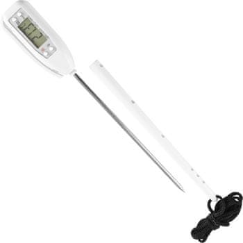 Elektronski, zelo natančen termometer z iglo in LCD-zaslonom. Idealen za uporabo v gostinstvu. Vključuje etui, ki ščiti termometer pred mehanskimi poškodbami. Termometer lahko obesite kamor koli z vrvico ali pa ga pritrdite na pas s sponko. Idealno za merjenje temperature mesa, jedi, tort, tekočin itd.
