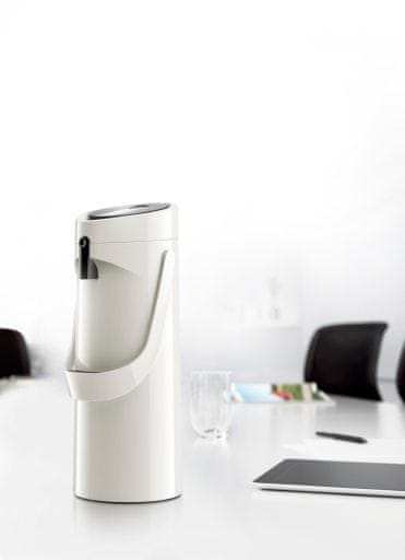 Dizajnerska termovka s črpalko izvrstno ohranja toploto pijače. Vroče pijače v termovki zdržijo do 12 ur, mrzle pa tudi do 24 ur. Zaradi snemljivega zgornjega dela sta čiščenje in polnjenje zelo enostavna. Celoten opis