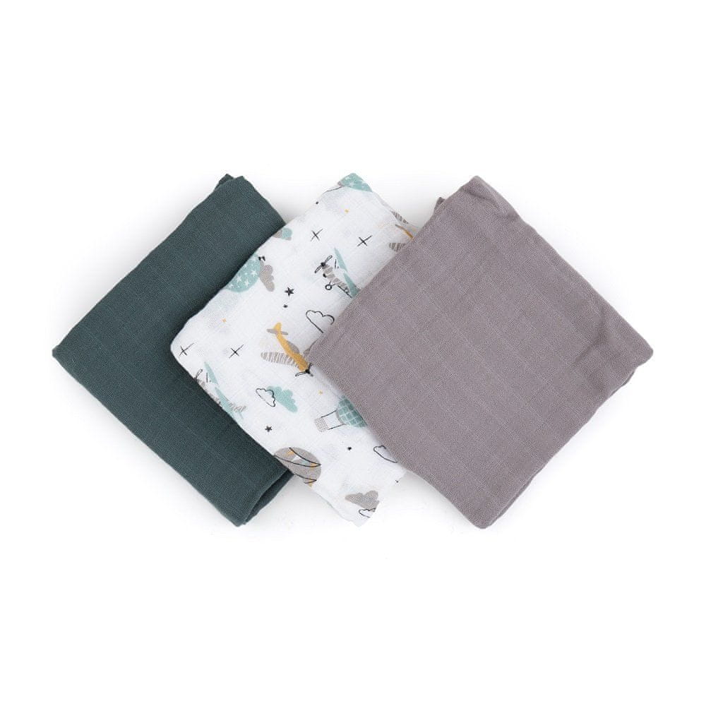 Petite&Mars PETITE&MARS Komplet bambusovih muslinskih plenic 3 kosi Moussy Grey Planes, 68 x 68 cm