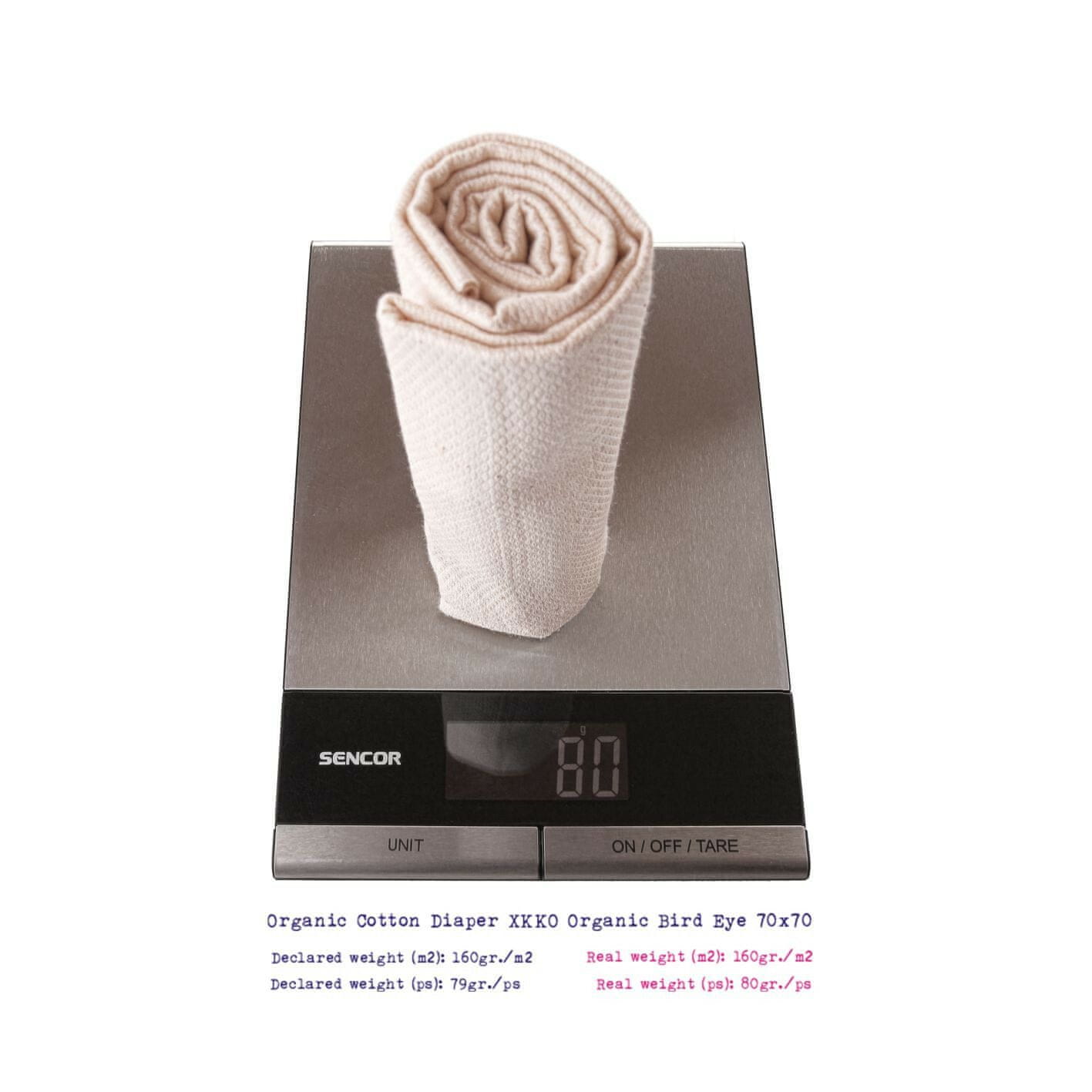 "Plenice iz certificiranega organskega bombaža v obliki Bird Eye! " Ponujamo XKKO Organic Bird Eye zložene plenice in XKKO Organic Bird Eye kvadratne plenice 80×80 iz istega materiala.