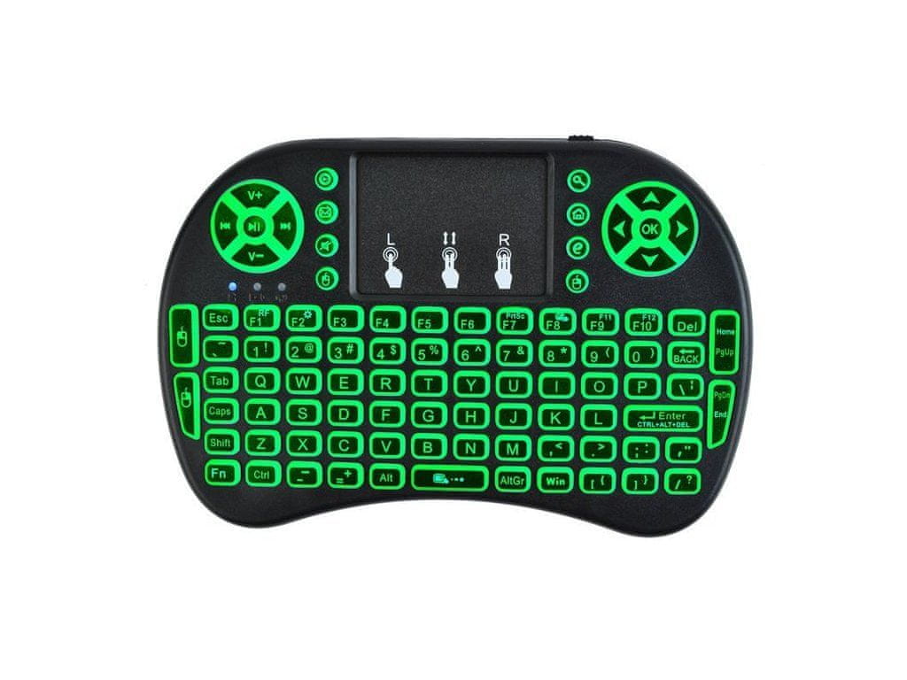 Brezžična tipkovnica je udobna in popolnoma funkcionalna zahvaljujoč celotnemu naboru QWERTY in funkcijskih tipk, ki zagotavljajo prosto navigacijo po internetu in omogočajo učinkovito upravljanje multimedije. Vgrajena sledilna ploščica omogoča upravljanje kazalca miške s tipkovnice; 3 stopnje DPI bodo omogočile popolno prilagoditev občutljivosti individualnim potrebam; Enostavna nastavitev občutljivosti s pritiskom funkcijskega gumba in presledkov. Naprava ima funkcijo osvetlitve vseh tipk v 3 barvah: rdeča, zelena, modra; to omogoča učinkovito uporabo pri šibki svetlobi ali popolni temi. Tipkovnica deluje po principu Plug & Play, zato je takoj po priklopu pripravljena za uporabo; podpira večino elektronskih naprav, ki delujejo na trenutno uporabljenih operacijskih sistemih (Windows, Android), smartTV, igralnih konzolah.