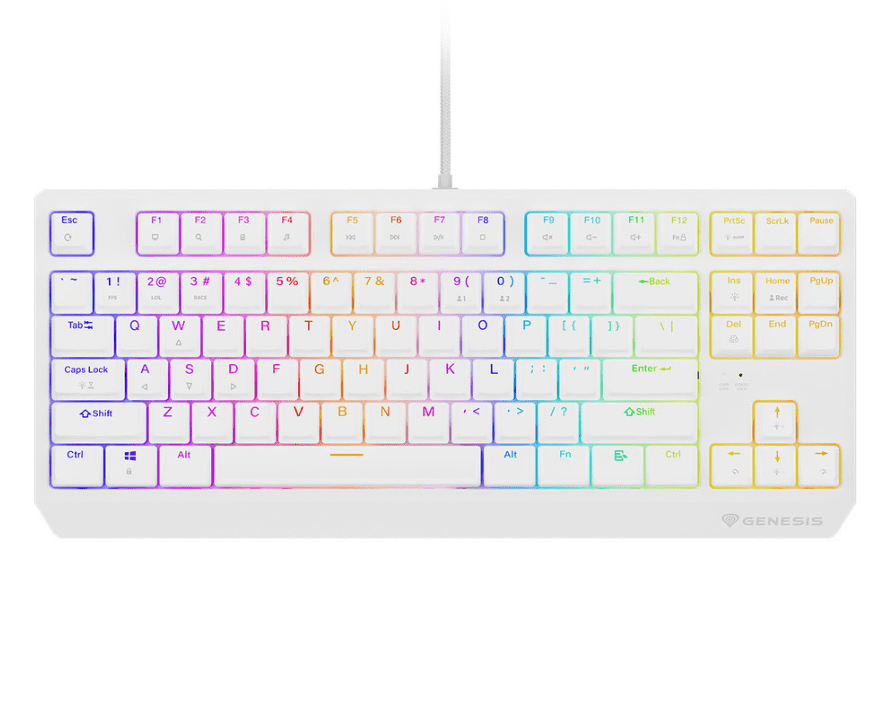 Genesis THOR 230 TKL je mehanska gaming tipkovnica, ki vas bo navdušila v vseh pogledih! Njen atraktiven videz v beli barvi ji daje unikatnost, prav tako pa tipkovnico odlikujejo njene izjemne funkcije in prednosti pred konkurenco. Prepustite se edinstveni barvni kombinaciji z RGB LED osvetlitvijo! Tipkovnico odlikujejo njene odlične funkcije: