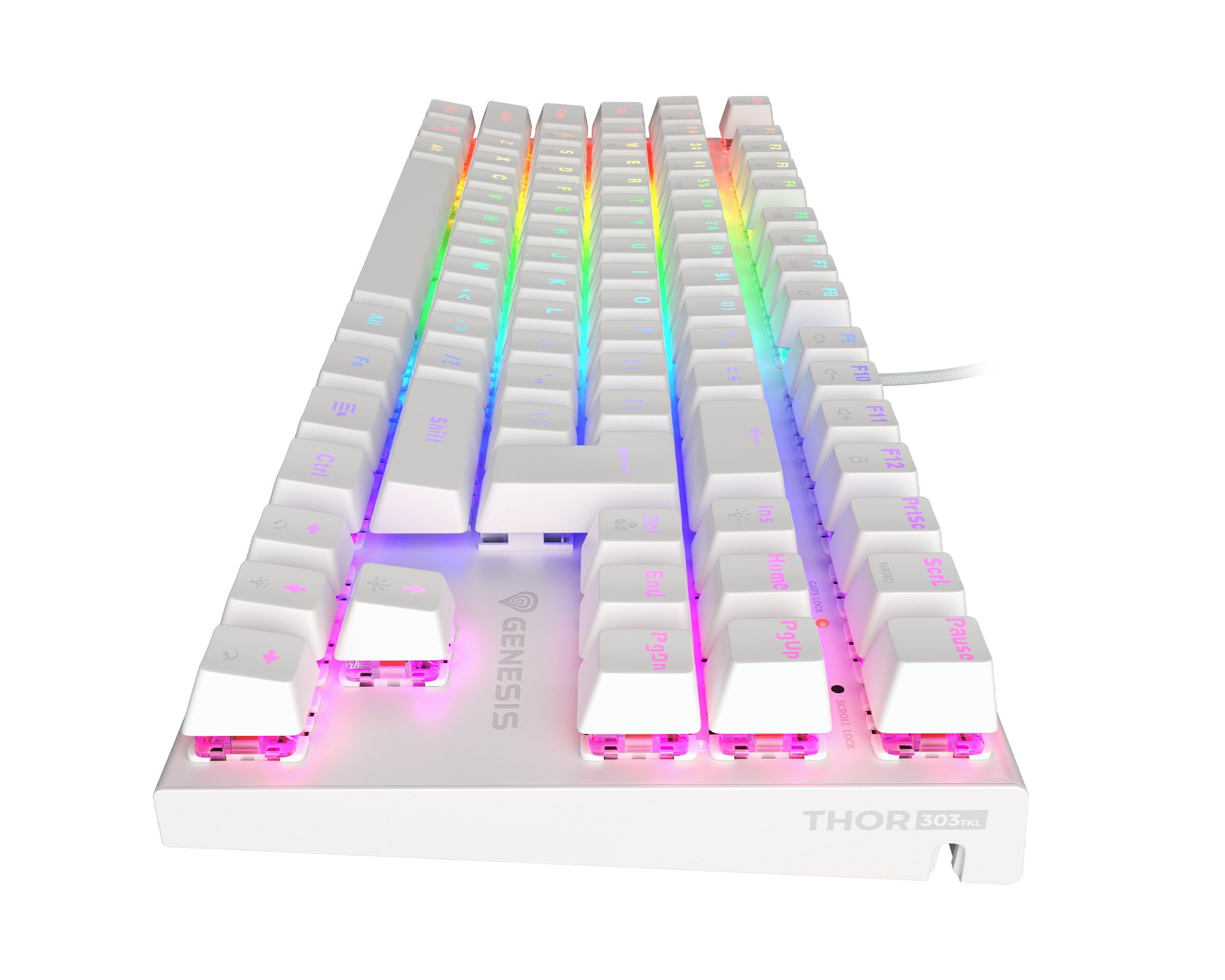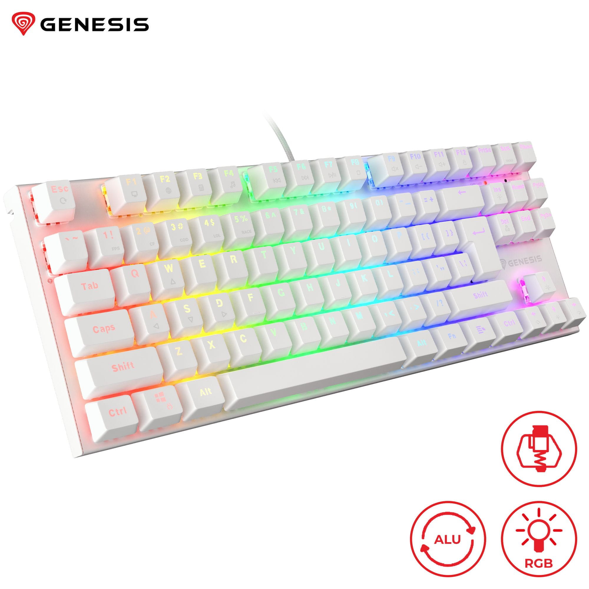 Genesis Thor 303 TKL gaming tipkovnica, mehanska, RGB LED osvetlitev, Anti-Ghosting, F1 - F12, aplikacija, bela
