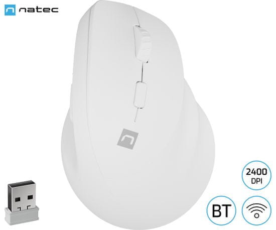 Natec Crake 2 vertikalna brezžična miška, za desničarje, bela