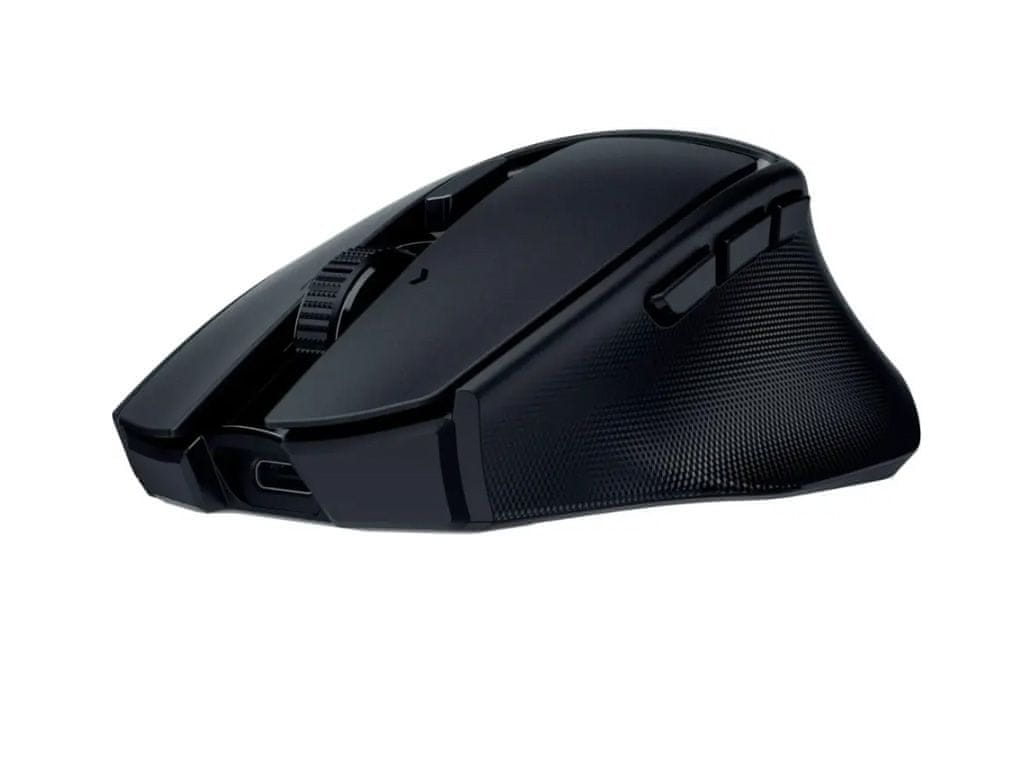 Ergonomska igralna miška z dolgotrajno baterijo in 10 programirljivi gumbi, ki se jih lahko nastavi glede na delo ali igro, ter različnimi možnostmi za povezavo.