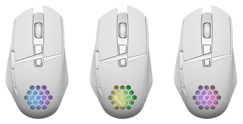 shumee Brezžična miška Defender GLORY GM-514, optična, 3200 dpi, bela, RGB, polnilna, 7 gumbov, igralna