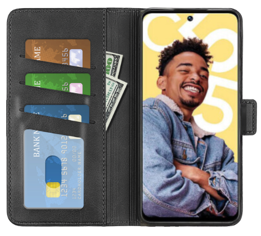 Sprednja loputa, ki se odpre na dolgem robu, zagotavlja najboljšo zaščito zaslona za vašo napravo pred praskami in odrgninami. Magnetno zapiranje preprečuje nenamerno odpiranje in vam omogoča prosto uporabo etuija brez strahu, da bi dokumenti ali denar padli ven.