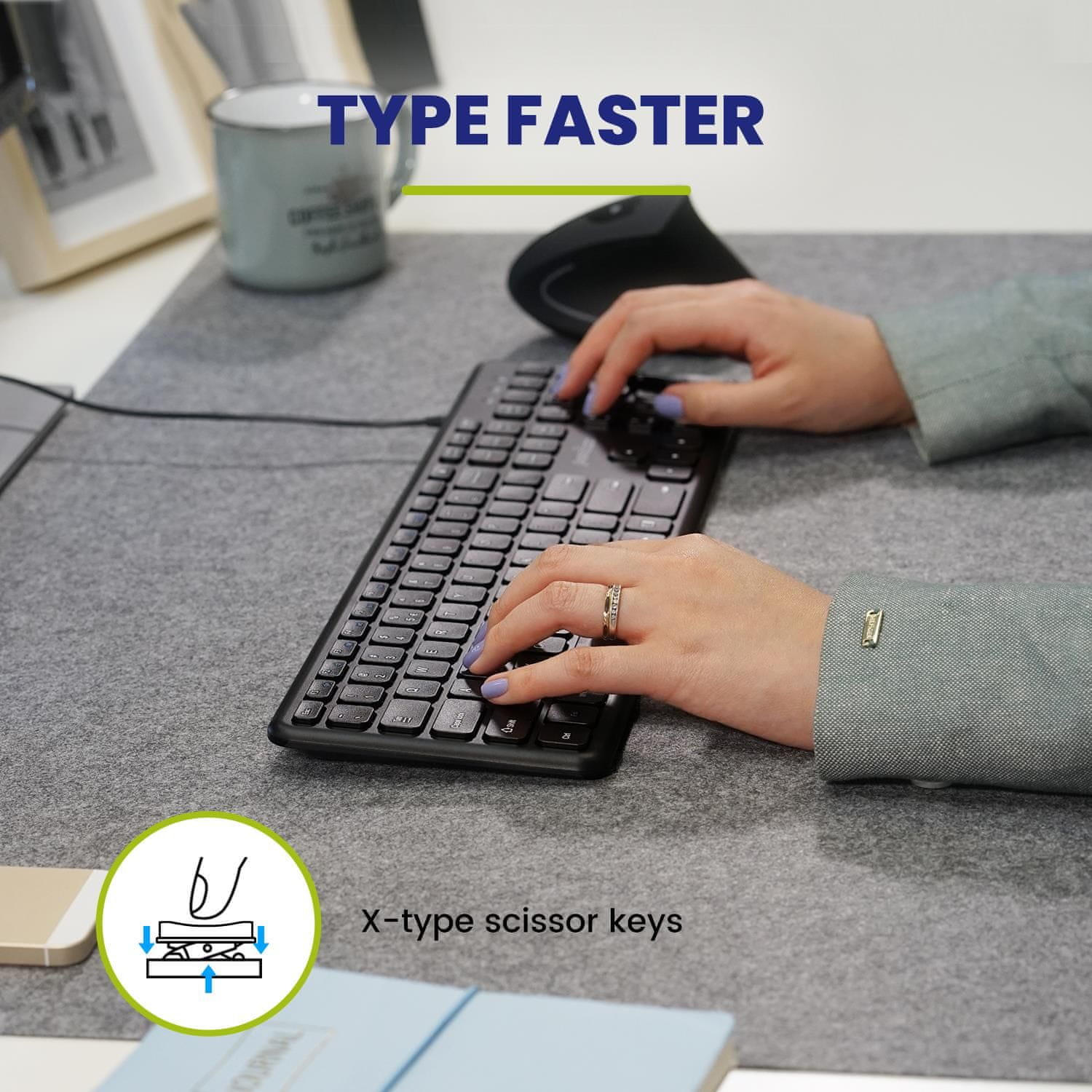 Perixx PERIBOARD-210 škarjasta žična tipkovnica, ultra tanka, črna Celoten opis