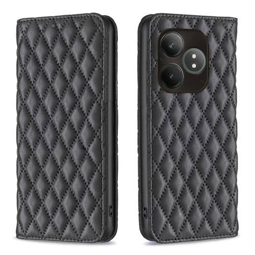 shumee Usnjena karirasta torbica Wallet za Realme GT 6 / 6T črna