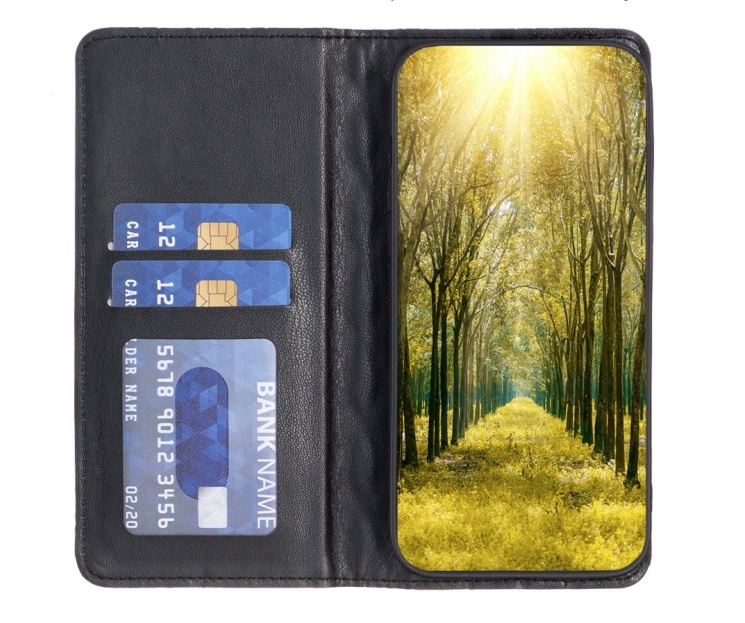 Usnjena karirasta torbica Wallet za Realme GT 6 / 6T črna Celoten opis