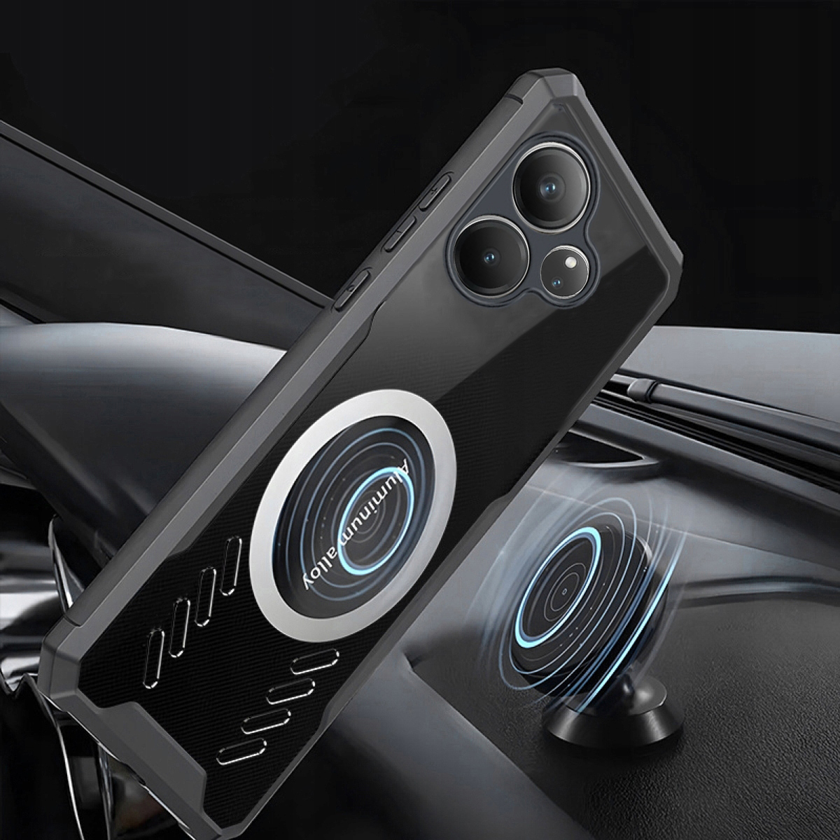 ✅Posebna plošča, vgrajena v strukturo etuija, omogoča montažo telefona z etuijem na magnetno držalo. Deluje s klasičnimi magnetnimi in „MagSafe“ nosilci.