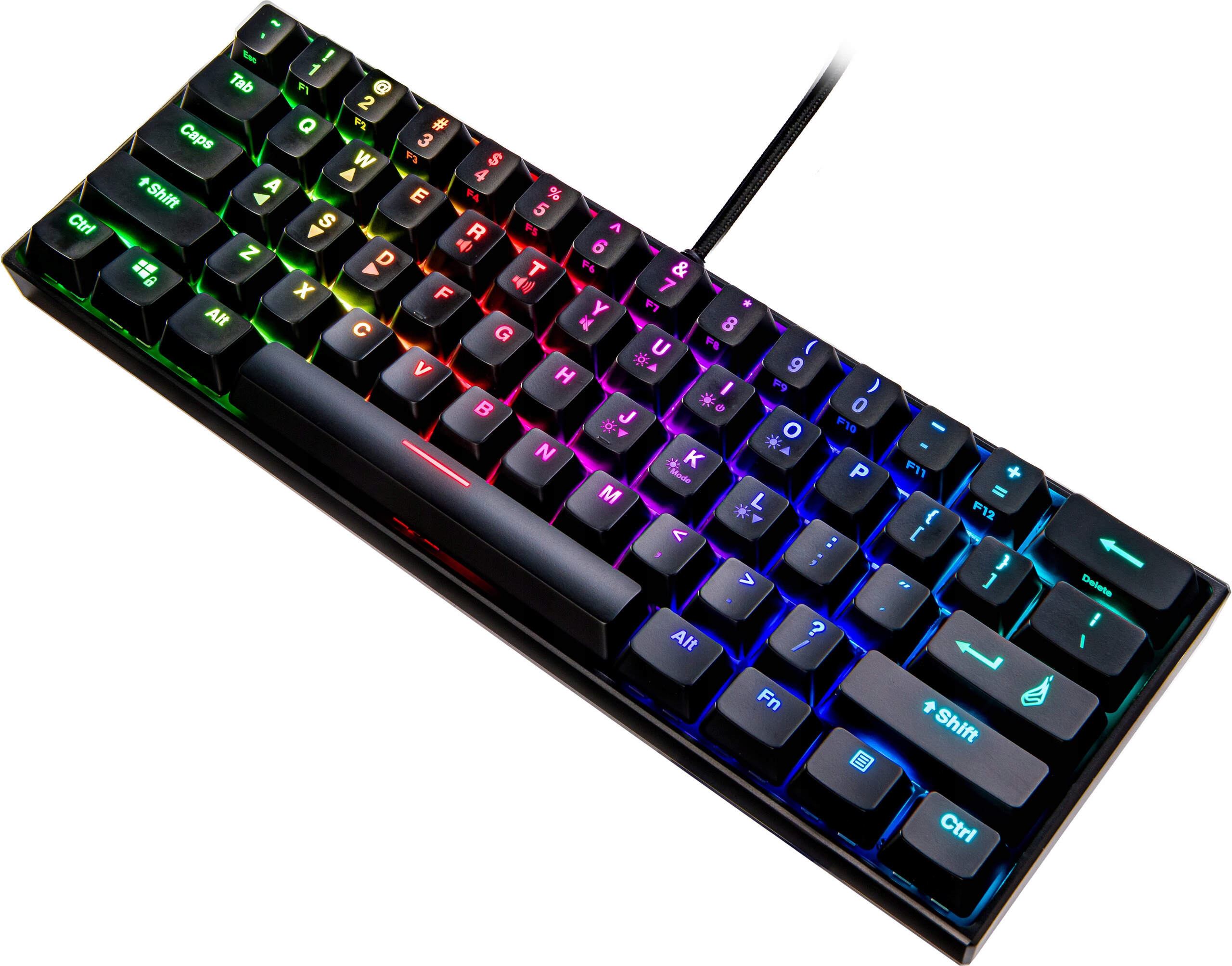 Mehanska igralna tipkovnica 60 %. Rdeča linearna mehanska stikala – odzivni čas 1 ms.