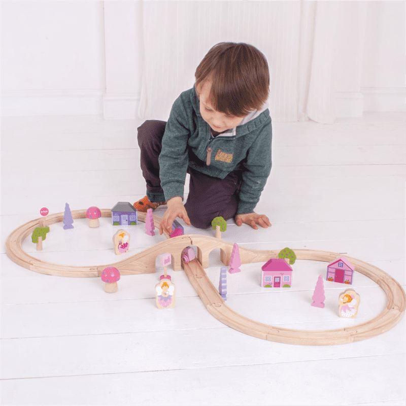 Bigjigs Rail Lesena vlakovna proga Osmička za princeske 35 kosov