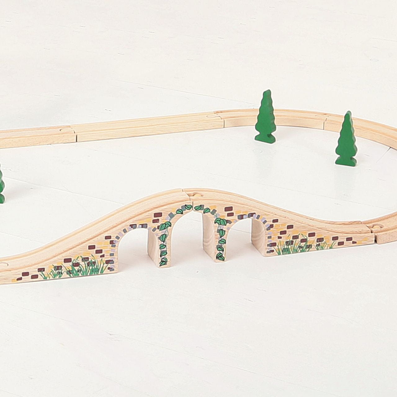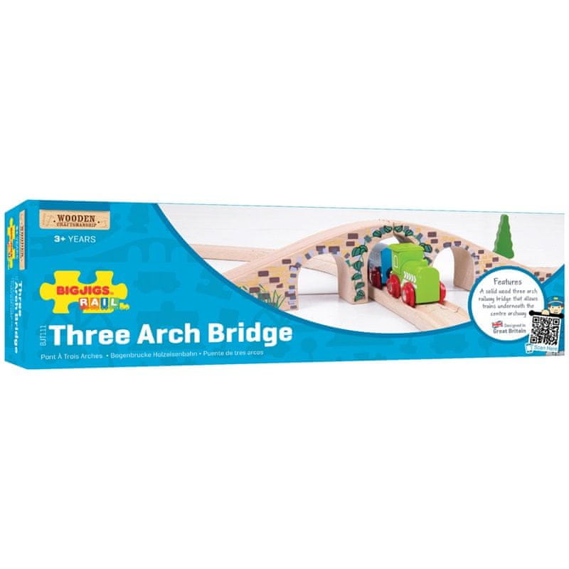 Če morate z vlakom prečkati reko, cesto ali križišče z drugo železnico, boste potrebovali ta most s tremi loki. S kamnitimi opečnimi detajli na straneh in kakovostnim zaključkom je ta most dragocen dodatek k vsaki leseni železniški progi.Vključeno jevse, kar jeprikazano na sliki. Glavneznačilnosti: Bigjigs Rail vlake in dodatke je mogoče kombinirati z vsemi drugimi lesenimi vlaki na trguNarejen iz visokokakovostnih in odgovorno pridobljenih naravnih materialovSkladen z veljavnimi evropskimi varnostnimi standardiPodpira domišljijo, spretnost in koordinacijo