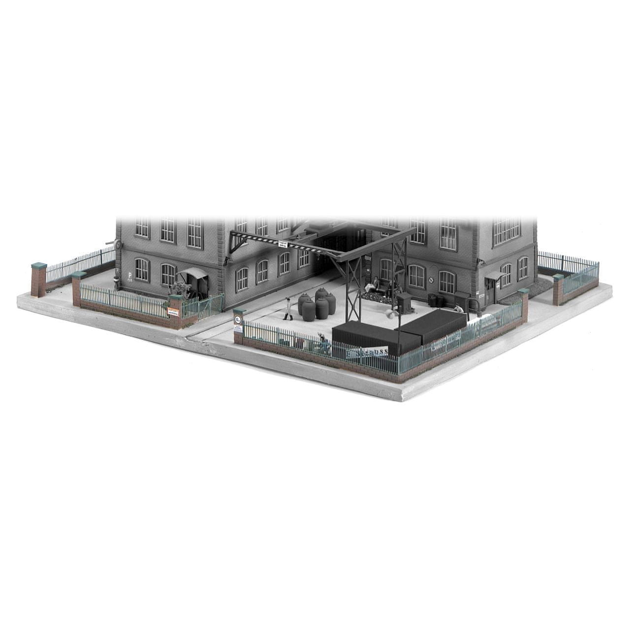 Ograja steklarne E. Strauss iz serije PIKO Authentic Edition je del serije kompletov za ta velik industrijski kompleks, lahko pa jo uporabite tudi kot dodatek k drugi tovarni ali industrijskemu kompleksu po lastni izbiri. Sestavljena je iz podrobnega opečnega podstavka s stebri in podrobne členjene ograje z več različnimi vrati. Za dokončanje ansambla steklarne se uporablja komplet glavne in stranske stavbe, dimnika in žerjava z dodatki. Podstavek, primeren za ograjo, je vključen v te druge komplete steklarne. Drugi predmeti, prikazani na sliki (avtomobili, figure itd.), niso vključeni. Plastične miniature PIKO bodo našle svojo uporabo pri oblikovanju realističnih železnic in dioram. S premišljenim barvanjem, ki v tej seriji vključuje tudi patino, svoje modele posnemajo z največjo zvestobo, ki jo je v nekaterih primerih mogoče individualno izboljšati s priloženimi nalepkami. Podrobni in natančni plastični izveski posameznih delov se med seboj brezhibno ujemajo, podrobna navodila, priložena vsakemu kompletu, pa olajšajo sestavljanje, tako da lahko svoj dragoceni čas posvetite edinstvenemu oblikovanju pokrajine in postavitvi posameznih elementov na prizorišču. Med dodatki, ki so na voljo s temi kompleti, boste našli različne dodatke, potrošni material in vodnike z navodili in dragocenimi nasveti za načrtovanje prog. Izdelano v Nemčiji v skladu z najvišjimi standardi kakovosti. Glavne značilnosti:merilo H0 (1:87)realistične barve s patinacijolahko sestavljanjeizdelano v NemčijiDokumentacija:navodila za sestavljanje modela # 61120