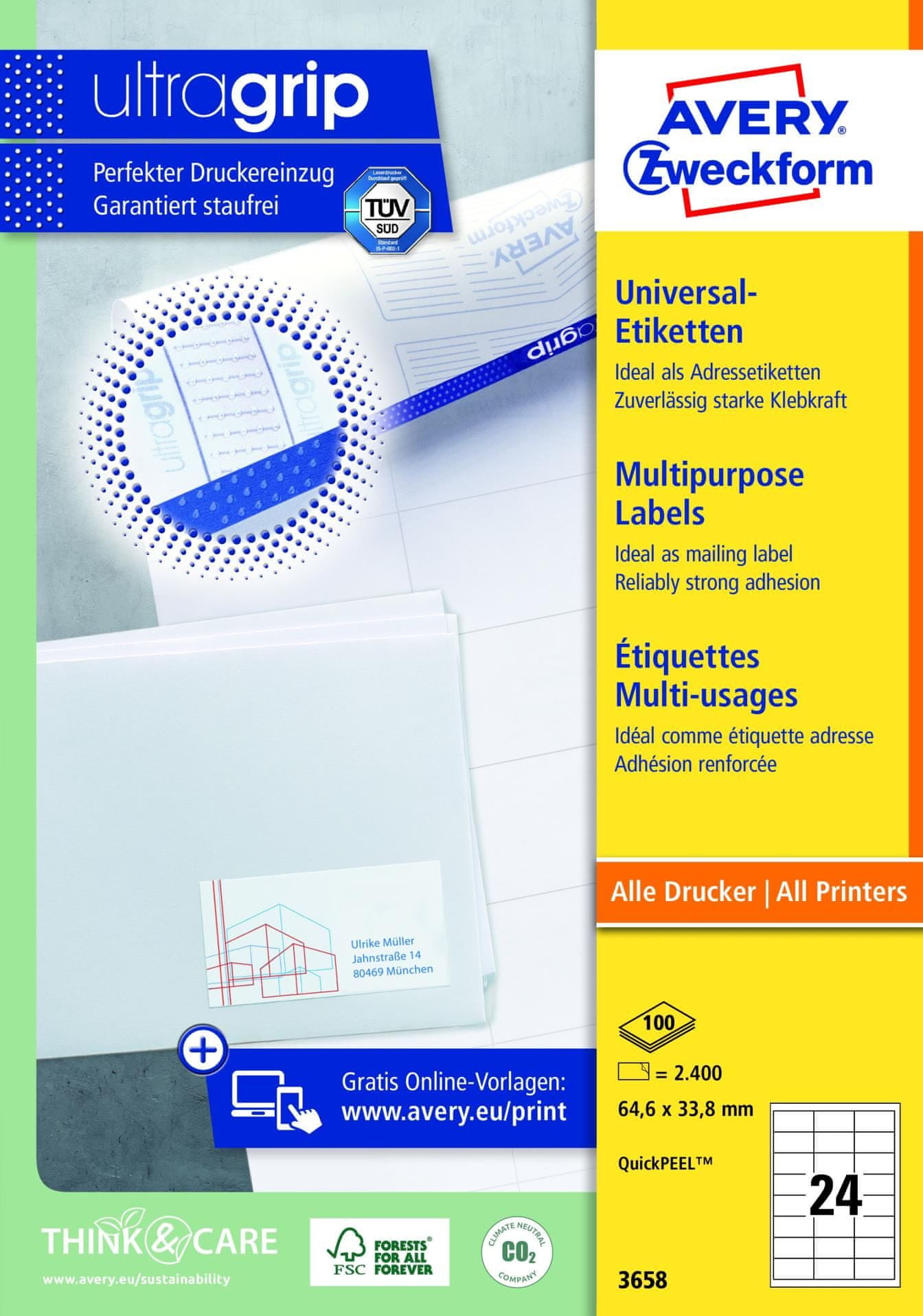 Avery Zweckform Univerzalne etikete Avery, 64,6 x 33,8 mm, bele