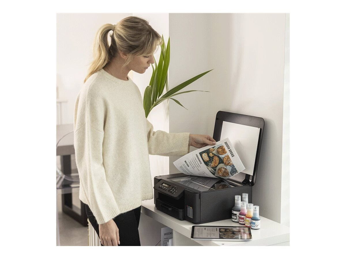 Brother DCP-T530DW združuje tiskanje, kopiranje in skeniranje v eni napravi, kar ga naredi vsestranskega in priročnega za vsakodnevna opravila. Njegov sistem črnilnih rezervoarjev ITS omogoča enostavno polnjenje. Z ločljivostjo tiskanja do 1200 × 6000 dpi bodo dokumenti in fotografije jasne, barvne ter profesionalnega videza.