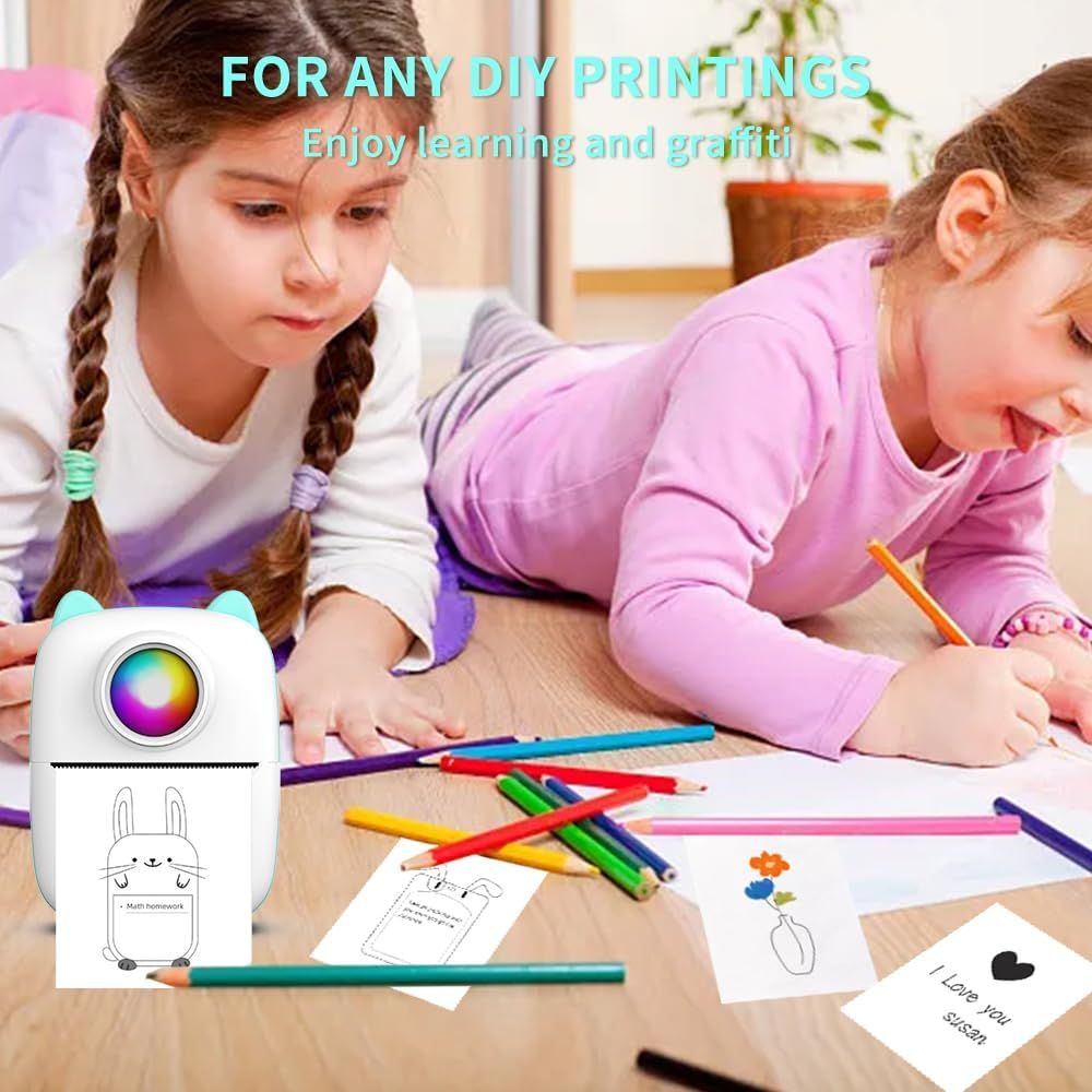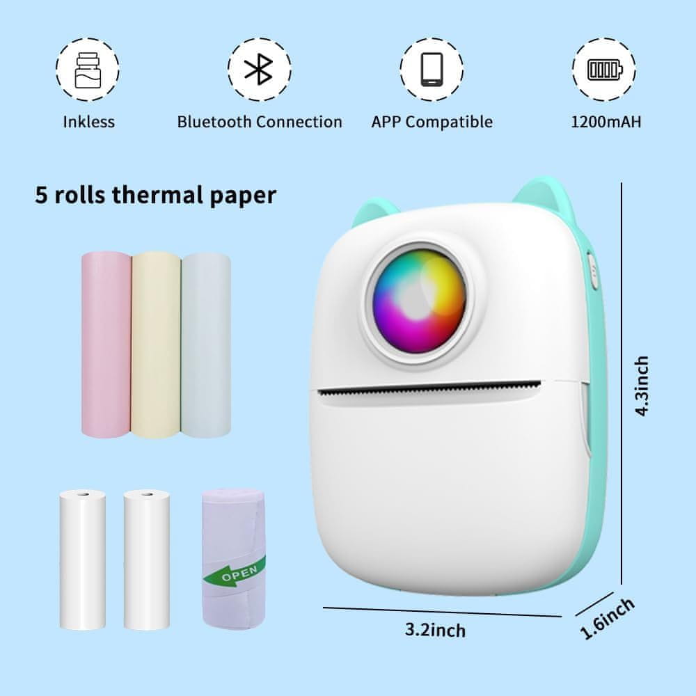 Mini termični tiskalnik CAT EARS za fotografije – prenosni + 15 zvitkov + 6 markerjev, kompakten, visoke kakovosti, popoln za ustvarjanje spominov