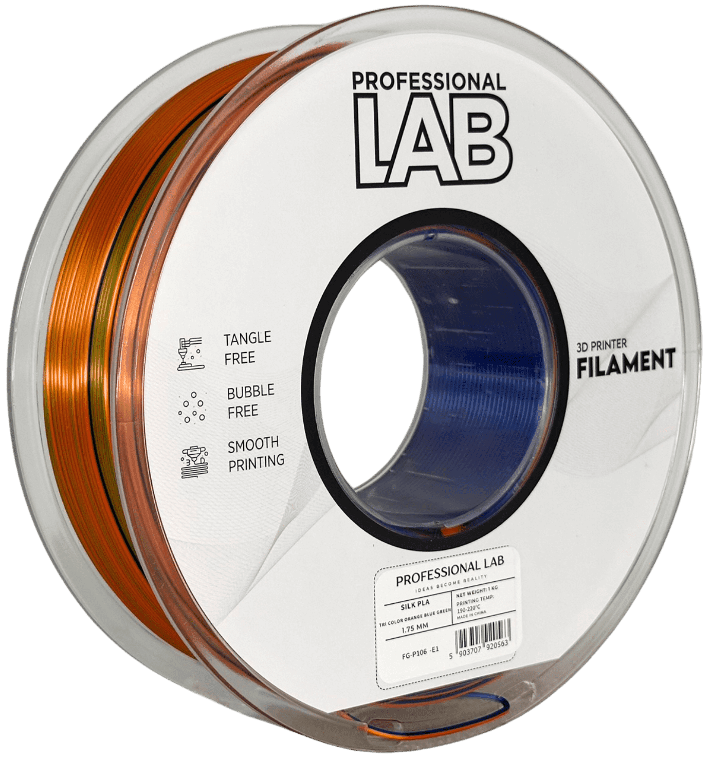 Professional Lab 5x Silk PLA Trojna Barva oranžna modra zelena filament 1.75mm - Professional Lab Sijajni Filament za 3D Tisk (1kg Kolut)