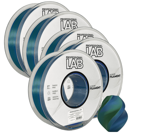 Professional Lab 5x Silk PLA Trojna Barva Objema Oceanov filament 1.75mm - Professional Lab Sijajni Filament za 3D Tisk (1kg Kolut)
