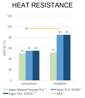 Za dosego navedene toplotne in mehanske odpornosti: natisnjen kos za 10–15 minut postavite v že segreto pečico na 80–130 °C, nato pečico ugasnite in počakajte, da se počasi ohladi. Po žarjenju prenese kos bistveno višje temperature in obremenitve.