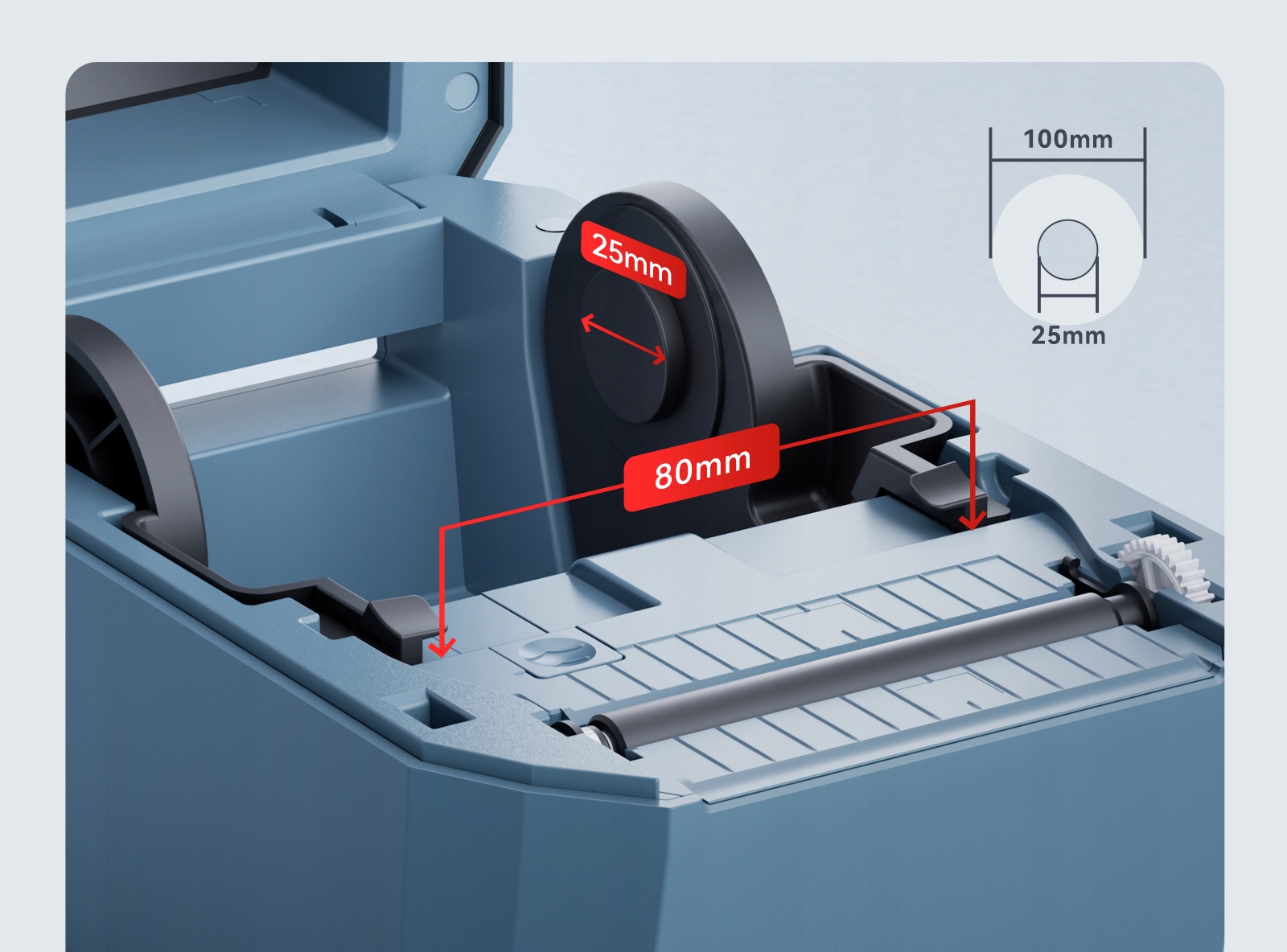 - Podprte širine etiket: 20 mm – 80 mm – vsestranskost pri tiskanju različnih vrst etiket in termičnega papirja