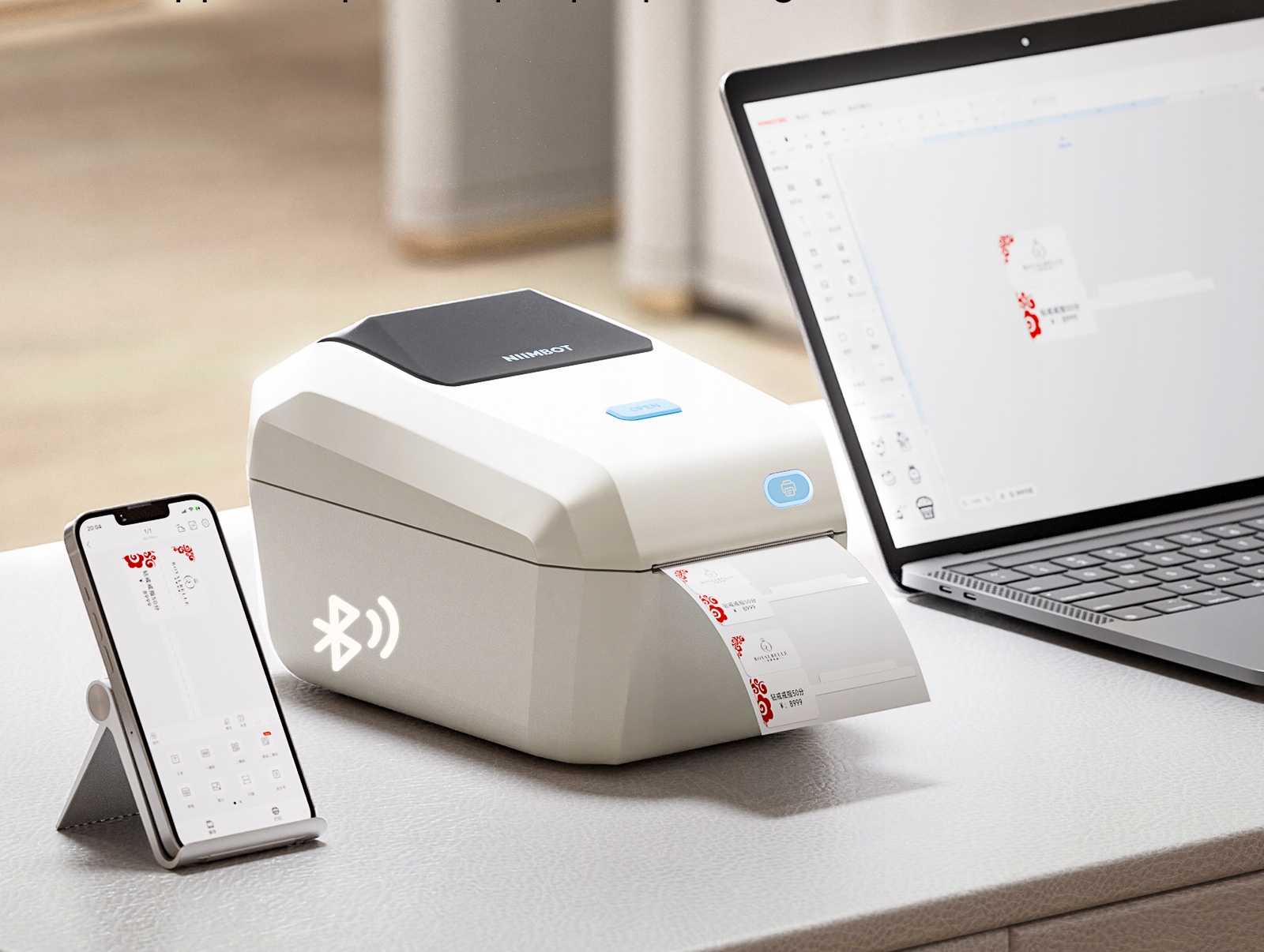 Tiskalnik je združljiv s sistemi Windows, macOS, Android in iOS. Intuitivna mobilna aplikacija NIIMBOT omogoča enostavno ustvarjanje in urejanje nalepk ter hitro tiskanje prek omrežja WiFi ali Bluetooth.