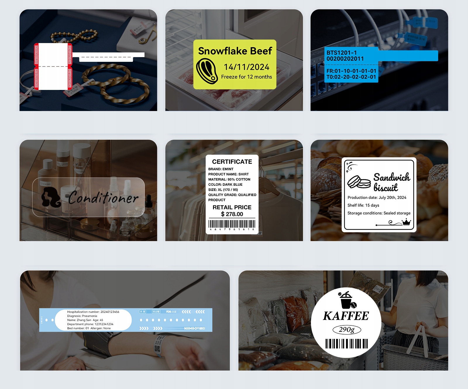 NIIMBOT KW je sodoben namizni tiskalnik etiket, zasnovan za hitro in učinkovito tiskanje etiket za različne panoge. Opremljen s tehnologijo Bluetooth in USB omogoča enostavno povezavo s številnimi napravami, vključno z računalniki in pametnimi telefoni, ter podpira do 10 uporabnikov hkrati.