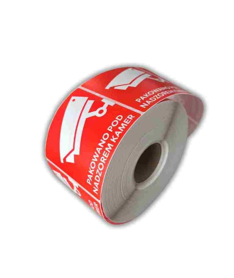 slomart Samolepilne nalepke "Pakirano pod video nadzorom", 80x80 mm, 1000 kosov, rdeče, z belim tiskom, močno lepilo.