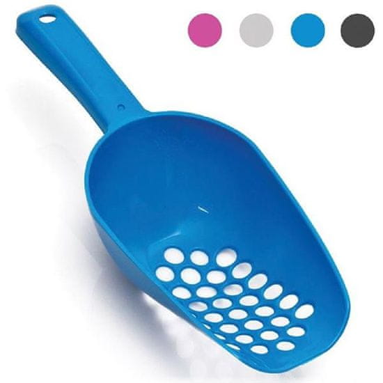 Praktična plastična zajemalka za odstranjevanje iztrebkov iz mačjega stranišča. Barva: mešanica barv. Barva se pošlje glede na trenutno zalogo. Dimenzije: 30 × 11 × 7 cm.