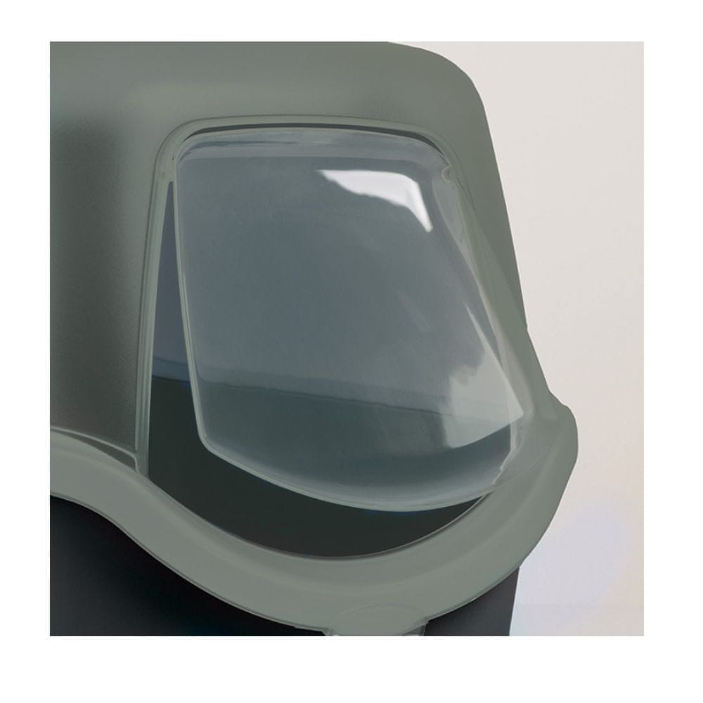 Zaprto, prostorno mačje stranišče z vrati iz kakovostne in trpežne plastike.
