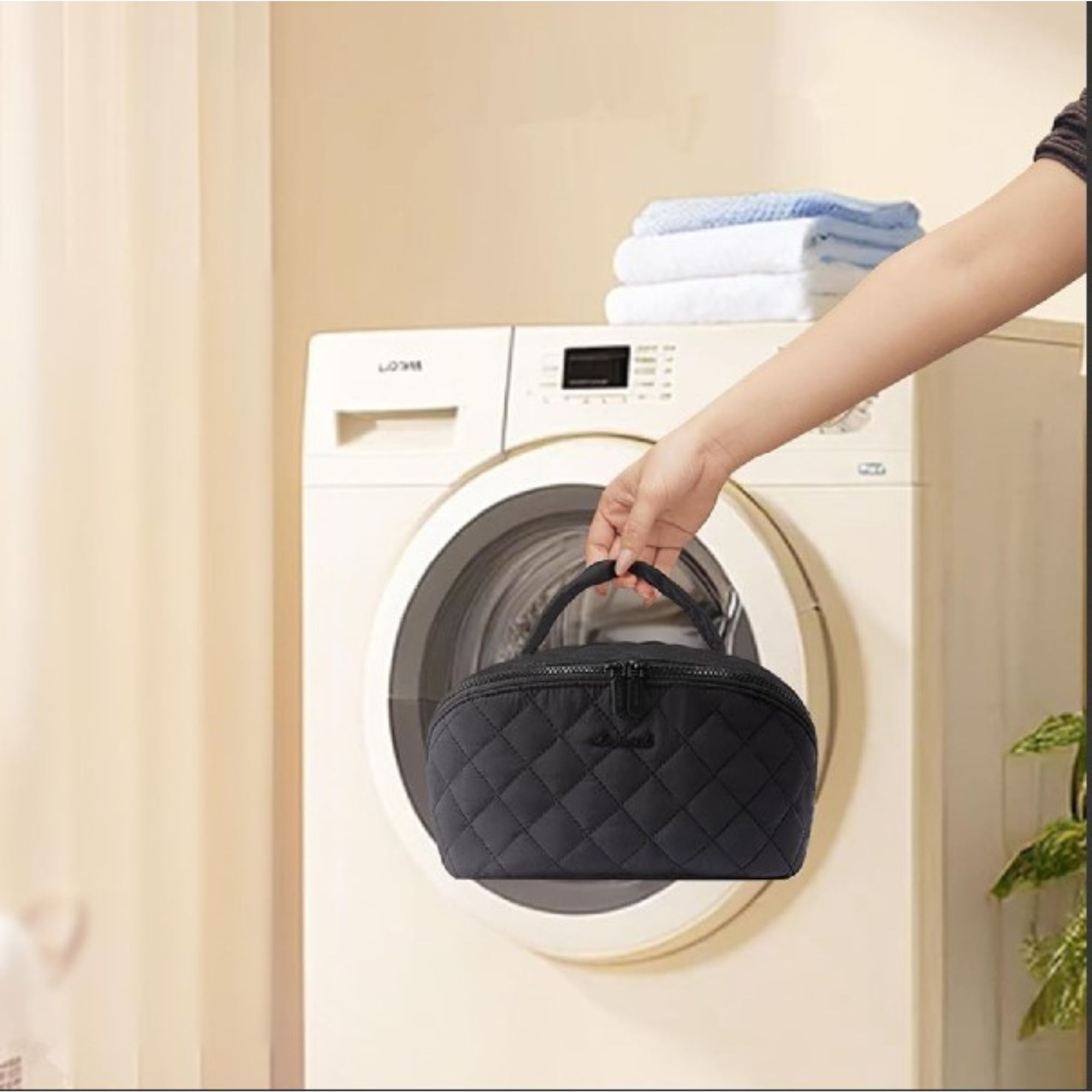 Zasnovana za ženske, ki cenijo lepoto in udobje, ta napihnjena kozmetična torbica zlahka sprejme vse vaše vsakodnevne izdelke za ličenje in nego kože, hkrati pa ohranja svojo obliko in strukturo.