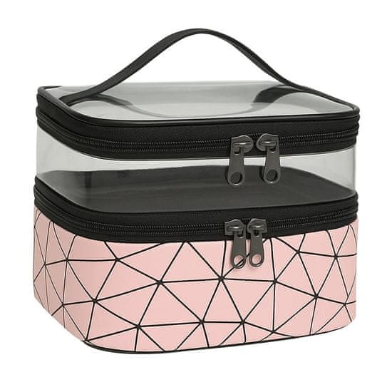 Kozmetična torbica – prostorna, ročaj za nošenje v roki, predal za ščetke, geometrijska oblika, prozoren vrh, dva predala na zadrgo, dimenzije 9 × 23 × 15,5 cm Celoten opis