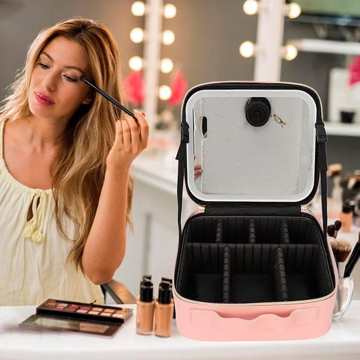 Vrhunski kozmetični kovček za ličila, opremljen z lučko in ogledalom za enostavno ličenje. Prilagodljive pregrade omogočajo popolno organizacijo, kompaktna zasnova pa enostavno prenašanje. Kovček za varno shranjevanje vaših kozmetičnih izdelkov. Celoten opis