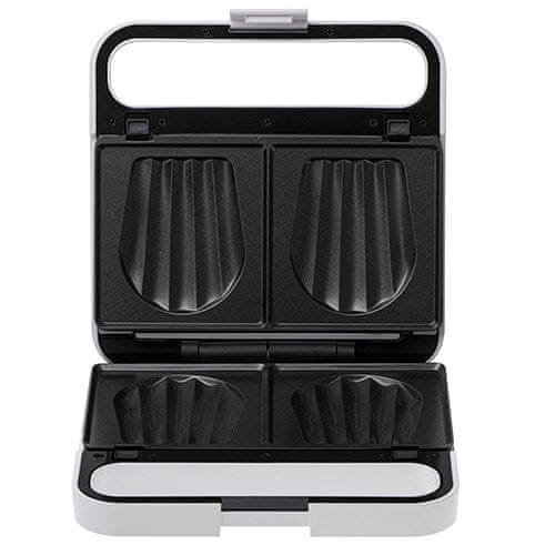 Toaster je opremljen z izmenljivimi ploščami, ki vključujejo plošče za kontaktno žarjenje in peko sendvičev, kar povečuje njegovo funkcionalnost. Z elegantno belo barvo in sodobnim dizajnom se odlično prilega vsaki kuhinji. Izdelan iz kakovostnega nerjavnega jekla in bakelita zagotavlja dolgo trajnost in enostavno čiščenje.