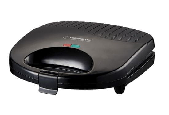 Esperanza Toastnik Esperanza EKT009 1000W, črn, s kvadratno ploščo, protidrsnimi nogicami in zaklepom ročaja