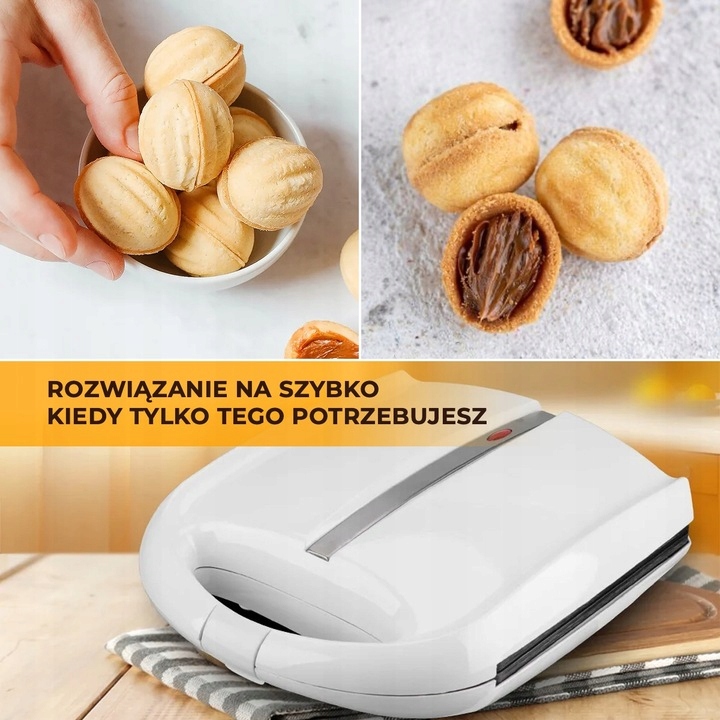 Udobje uporabe našega izdelka je predvsem posledica nelepljive prevleke grelne plošče . To vam omogoča ne le hitro odstranjevanje pečenih oreščkov, temveč tudi hitro in brez napora čiščenje naprave . Preprosto jo obrišite z vlažno krpo, ko se ohladi. Ti piškoti bodo čudovit okras za našo kuhinjo.
