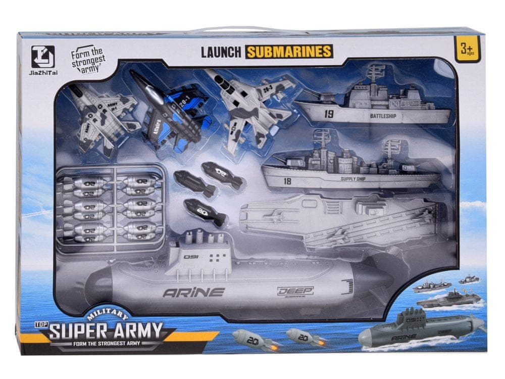 Komplet Malega vojaka, ki vključuje letala, vojaške ladje in podmornico, , zagotavlja vso potrebno opremo za izvajanje bojnih operacij. Mladi strateg bo imel na voljo pomorsko floto in tri bojna letala, ki bodo iz zraka patruljirala po območju. Komplet je v celoti izdelan iz plastike z ustreznimi barvami in grafiko. Poleg tega ima podmornica pogon na dve zadnji kolesi, zaradi česar je igra bolj realistična.
