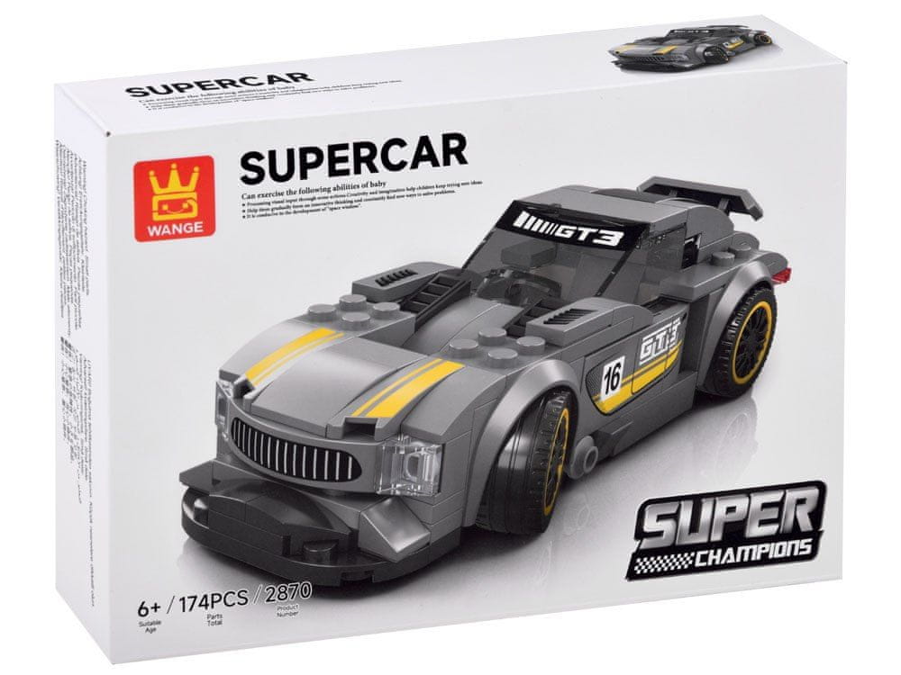 Tehnični bloki Športni avto SREBRNI 174-delni + nalepke ZA4287 Celoten opis