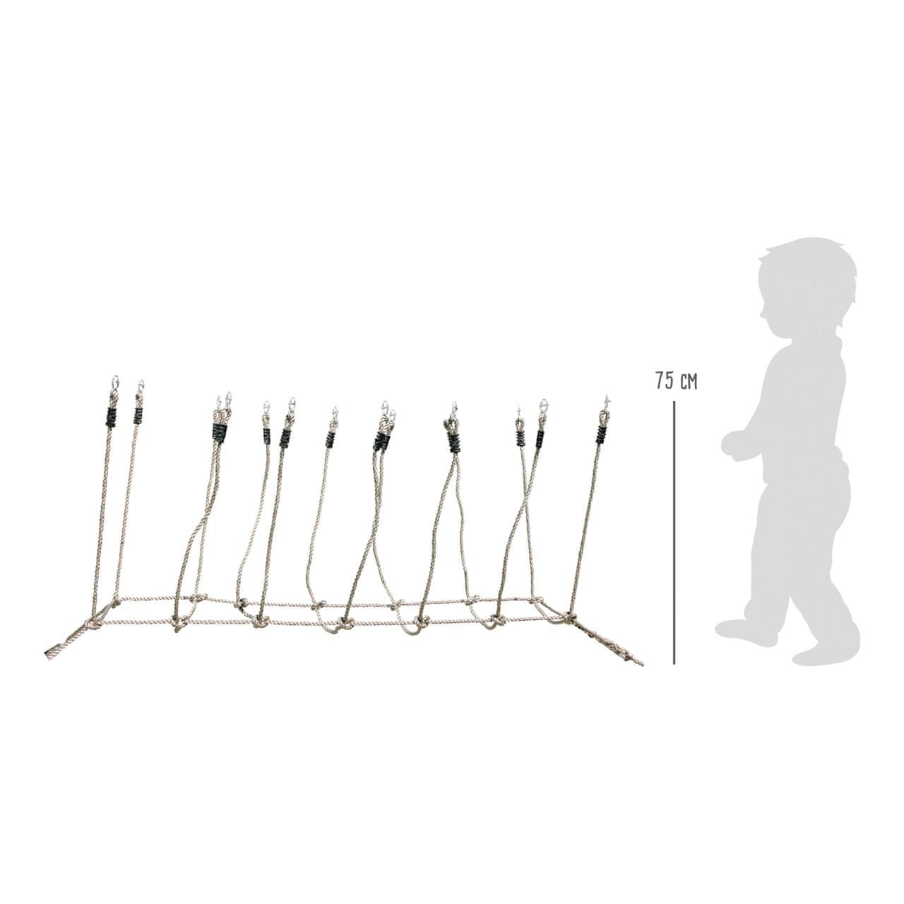 Z vrvnim mostom preizkusite in trenirajte pogum, moč in občutek za ravnotežje svojih otrok. Je odličen dodatek na vrtu ali igrišču, le raztegnite ga med dvema drevesoma. Trpežna in upogljiva vrv je odporna na vremenske vplive. Njeni konci so opremljeni s kovinskimi uvodnicami, zaradi katerih je obešanje zelo enostavno in spremenljivo. Glavne značilnosti: dolžina mostu 2 m nosilnost 100 kg Dokumentacija: navodila za uporabo Vrvni most (CZ)navodila za uporabo Vrvni most (SK)