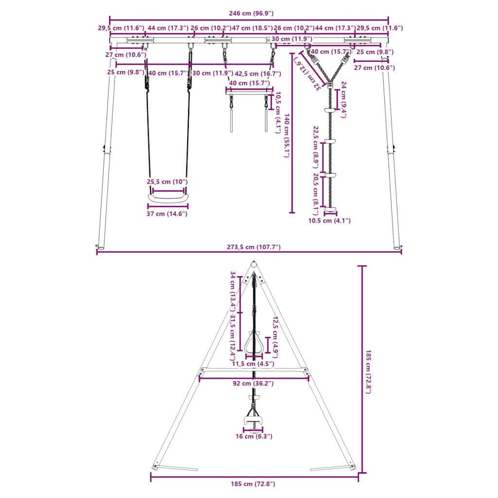 Vidaxl Zunanji komplet z gugalnico, trapezom, gugalnico s stopničkami