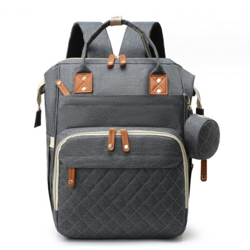 Nahrbtnik lahko služi tudi kot previjalna torba, saj je zasnovan tako, da zagotavlja maksimalno organiziranost in preglednost, kar je neprecenljivo pri negi otroka. Z različnimi posebnimi predelki in žepi lahko vsak predmet pospravite na svoje mesto – od plenic in oblačil, stekleničk, hrane in igrač do starševskih malenkosti, kot so mobilni telefon ali ključi. Zahvaljujoč premišljeni razporeditvi predelkov se zlahka izognete iskanju določenih stvari po nahrbtniku, saj ima vse svoje logično in lahko dostopno mesto.